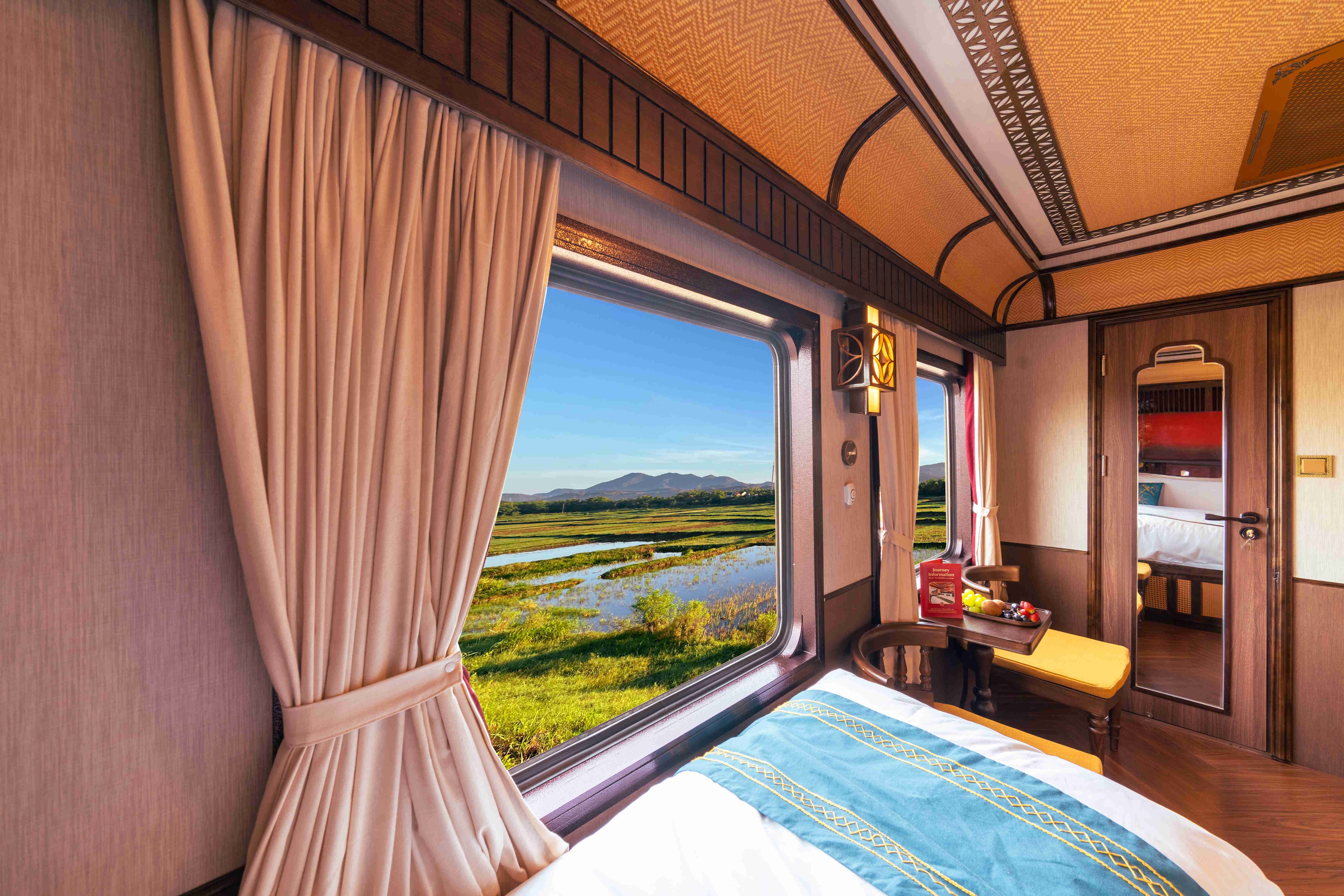 For the ultimate expression of luxury rail travel, the Imperial Grand Suite offers an unparalleled experience. Significantly larger and more opulent than our standard cabins, the Suite is designed to evoke the stately grandeur of the Nguyen Dynasty, providing a true palace on wheels. Guests enjoy enhanced living space, bespoke furnishings, and refined decorative touches that recall Vietnam’s imperial past. Perfect for discerning travelers, the Suite offers superior privacy, maximum comfort, and dedicated personalized service, ensuring your journey across Vietnam is nothing short of majestic.
